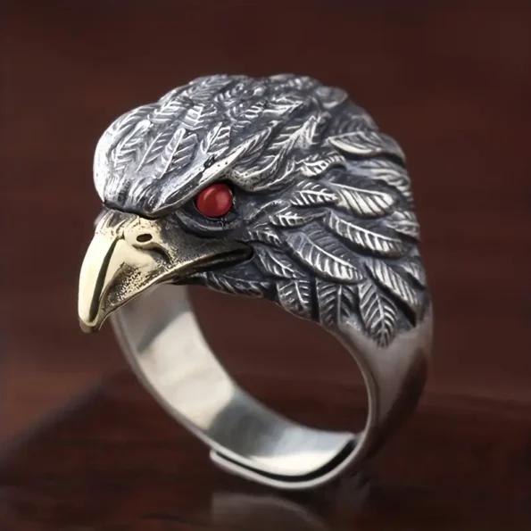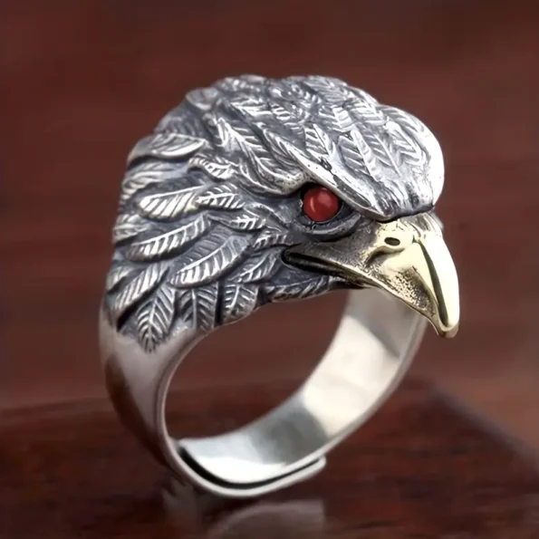 The ring features a special plating that gives it an antique, vintage-inspired finish. This unique plating enhances the intricate detailing of the eagle design, making it stand out as an iconic statement piece in any jewelry collection. - Adjustable Size: