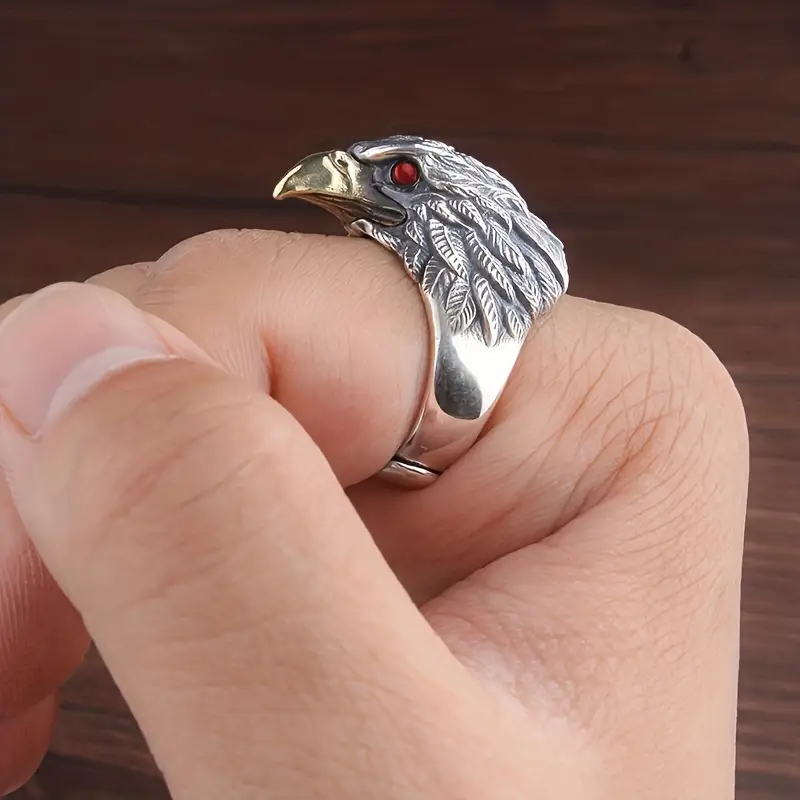This eagle ring is crafted with a distinctive gothic and hip-hop vibe, blending the boldness of rock fashion with a touch of vintage charm. The intricate design of the eagle head exudes power and mystery, making it a popular choice for those looking to add a rebellious flair to their wardrobe. - Material: High-Quality Alloy